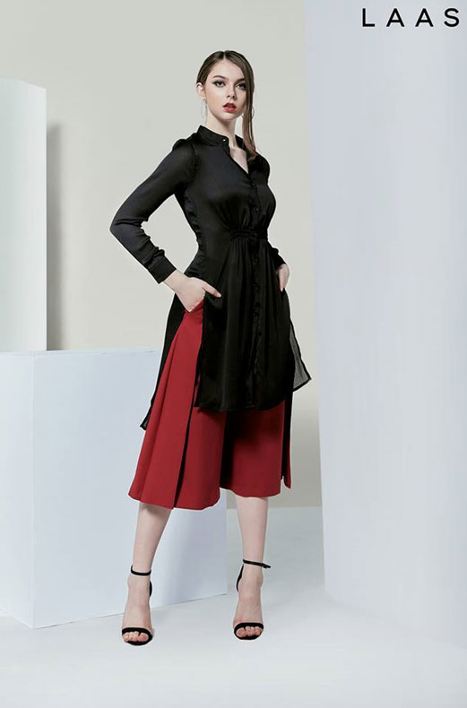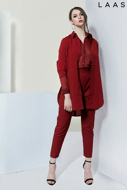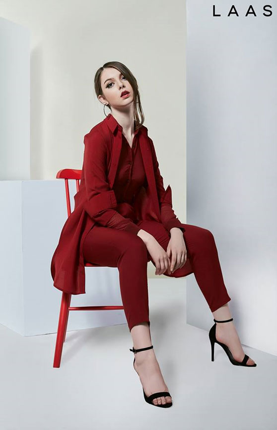Line Of Line: Với ý tưởng là sự tinh tế, những đường kẻ và phom dáng đơn giản luôn có mặt trong cuộc sống của chúng ta. Các thiết kế được chau truốt tỉ mỉ và mang tính ứng dụng cao với 3 gam màu: trắng, đen, đỏ. Và với tông màu mạnh mẽ khẳng định chất riêng của mình LAAS xây dựng hình ảnh người phụ nữ hiện đại, trẻ trung nhưng vô cùng xu hướng và hợp thời.